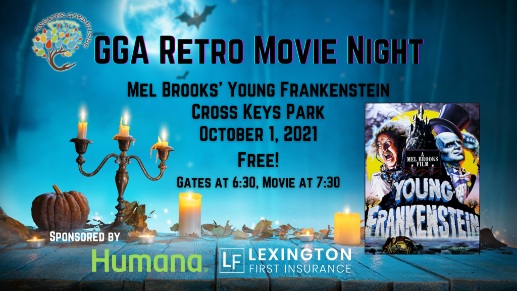 Join us on Friday, October 1st at 7:30pm at Cross Keys Park for Young Frankenstein – Mel Brooks’ 1974 horror-comedy classic! A doctor continues his grandfather’s reanimation research, getting help from his assistant to rustle up body parts of the recently deceased in order to create a perfect being. Free!